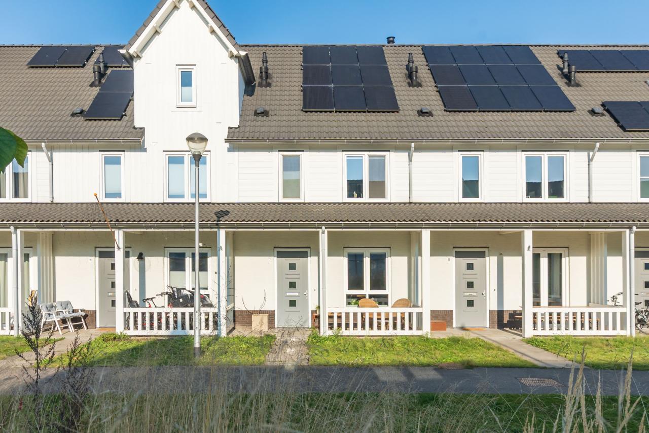 Aan de voorzijde heb je een veranda waar je heerlijk in de zon kunt zitten, uitkijkend over de groenstrook met speelweide.